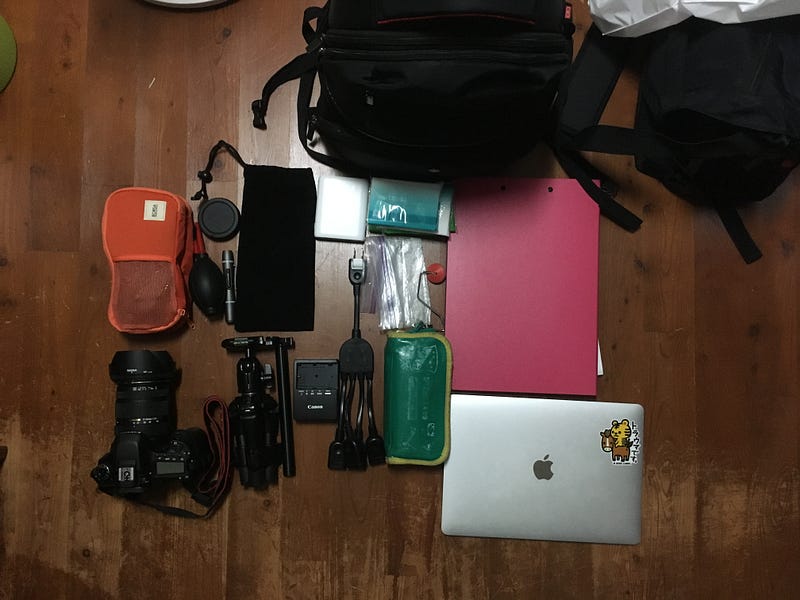 今回は預ける荷物でキャリーバッグ(というかコロコロ転がせるボストンバッグみたいなの)、そしてManfrottoのカメラバックパックの体制で行きました。ガジェットの周辺機器は以前紹介したELECOMのガジェットポーチで済ませ手荷物で機内持ち込みしましたよ。