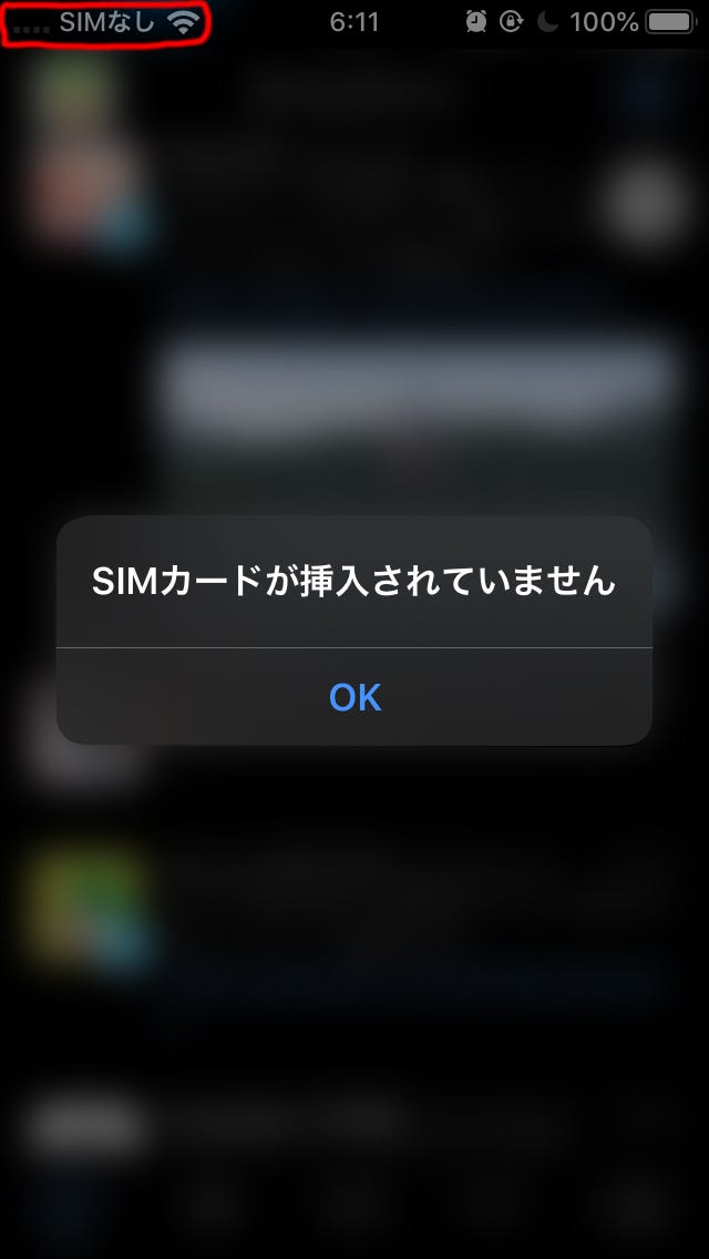 1回目は寝ている間に勝手に認識しなくなっていて起きた時にロック画面にアラートの通知が出ていて、それ以降は起きてからしばらく触っているといきなりキャリアの部分が圏外になり、それからちょっとしたら写真のようなアラートが出ると言った具合ですね。