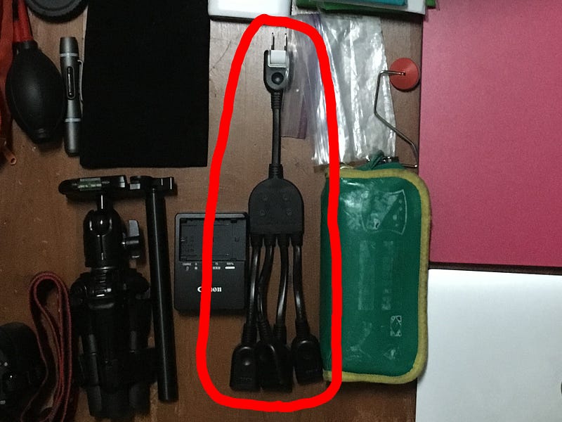 持っていってよかったモノ②:ELECOM ACアダプタを4個繋げる電源ケーブル