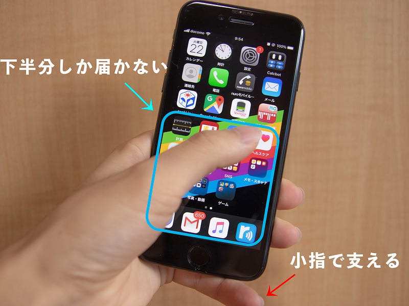 iPhone SEではなんとか小指支えスタイルを解いて持ち直して出来ていました。