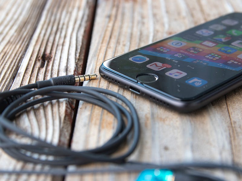 これも受け取ったときに気づいたんですけどiPhone 7からはイヤフォンジャックが無いんですよね。ボクはShure SE215という有線のモニターイヤフォンを使っていて、一人で移動する際はこれで常に音楽やラジオを聞いています。iPhone SEには3.5mmのイヤフォンジャックがあります。ただiPhone 7にはそんなポートはありません。